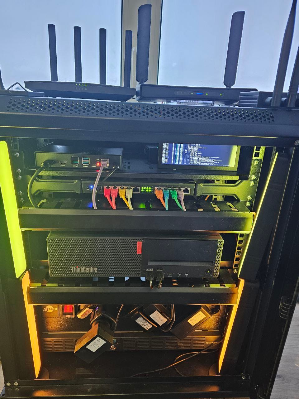 On top of all that happiness, I decided to add a separate machine for mini-monitoring, and also host things like Glance there (see Glance: setting up a self-hosted browser home page), since I turn off the ThinkCentre during long blackouts (although its power consumption is only about 20 Wh).